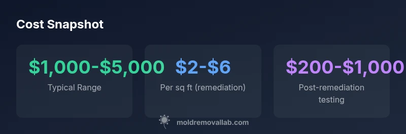 Mold growth in basements is a common and expensive problem because moisture is easy to hide and growth can occur behind walls. The cost to remove mold is not a single number; it reflects the area, the contamination level, and the moisture control needed to prevent recurrence. According to Mold Removal Lab, most residential basement mold jobs fall in the range of roughly $1,000 to $5,000 for a straightforward cleanup and containment. When growth is extensive, or structural repairs and drywall replacement are needed, costs can rise toward $8,000-$12,000 or more. Regional labor rates, market demand, and whether a permit is required also influence final pricing. Hidden mold behind walls or in HVAC plenums often adds thousand-dollar premiums because it requires additional access, containment, and testing. Homeowners should expect a staged process: inspection, containment, remediation, disposal, and post-remediation verification. The Mold Removal Lab team emphasizes that early moisture control—fixing leaks, improving ventilation, and drying damp spaces—can dramatically reduce overall costs by limiting the scope of removal needed.