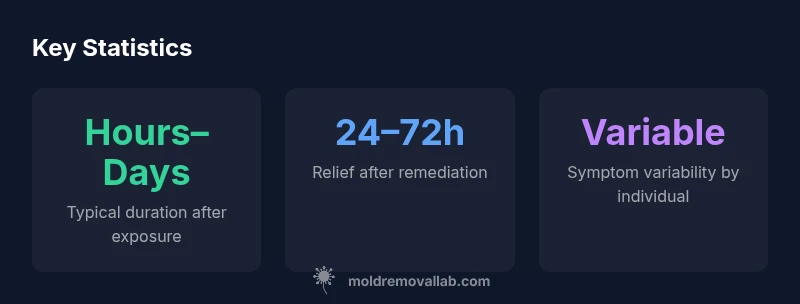 dataTable: {"headers": ["Aspect","Typical duration","Notes"],"rows": [["Headache duration after exposure ends","hours to 2–3 days","Depends on exposure level and sensitivity"],["Relief after remediation","24–72 hours","Improvements with humidity control and ventilation"],["When to seek medical advice","If headaches persist beyond 7 days","Evaluate chronic exposure or other conditions"]],"caption":"Mold headache duration and relief timeline"}