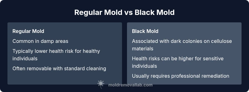 Regular mold refers to common indoor molds that typically cause mild irritation or allergies. Black mold is associated with darker colonies and heightened health concerns; accurate identification often requires lab testing, not just color observation.