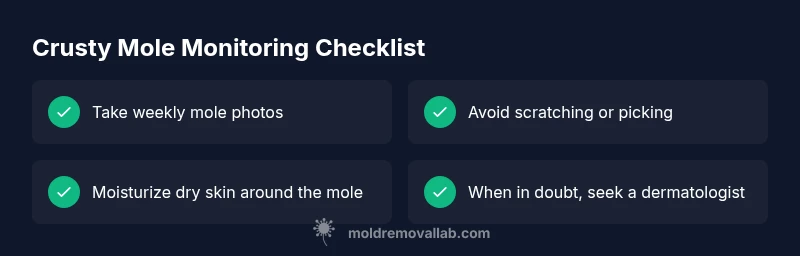 A crusty mole is not automatically dangerous, but it's a signal your skin is telling you something changed. The crusting may be from local irritation, eczema, or dry skin around the mole. In some cases, crusting accompanies more concerning changes such as irregular borders, color variation, or rapid growth. Understanding the context—how long the crusting lasts, whether it bleeds, and how the mole looks compared to previous photos—helps you decide if you need medical evaluation. According to Mold Removal Lab, crusting around skin features should prompt careful assessment rather than panic; a skilled clinician can distinguish benign rash or callus from a more serious lesion.