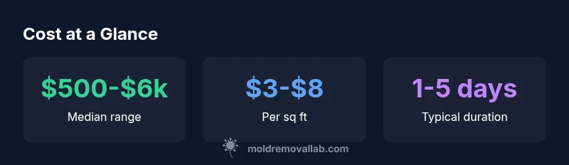The typical cost to complete mold abatement ranges broadly, from about $500 on small, contained cases to $6,000 or more for larger infestations. A precise quote depends on extent of growth, area size, moisture sources, containment needs, and any necessary repairs. For residents, expect a per-square-foot range of roughly $3-$8 in basic cases, with higher costs for complex sites.