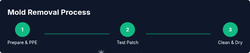 A typical DIY cleaning sequence involves testing a small patch, applying cleaner, scrubbing stubborn spots, rinsing, and thorough drying. Work in sections to prevent re-contamination, and always recheck the area after drying. If you encounter heavy growth or porous materials, pause and reconsider whether DIY is appropriate. This overview provides a framework you can adapt to your home while staying within safety guidelines.