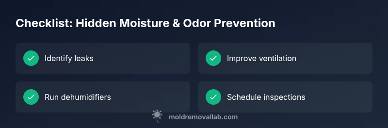 According to Mold Removal Lab, hidden moisture is the leading driver of musty odors when you can't see mold with the naked eye. A musty scent often signals damp building materials, hidden leaks, or high humidity trapped in walls, ceilings, and crawl spaces. The Mold Removal Lab team emphasizes that resolving odor starts with stopping the water source and reducing humidity, not just masking the smell. This block lays the groundwork for a practical, safe remediation approach, emphasizing avoidance of risky DIY methods that can spread contaminants. Expect a plan that begins with basic checks and moves toward targeted moisture control and ventilation improvements.