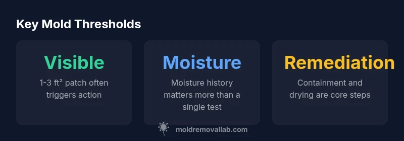 There isn’t a universal number that defines safety for every home. The Mold Removal Lab Team emphasizes that risk is driven by three factors: visible growth, moisture history, and occupant susceptibility. In practice, a small, isolated patch in a corner may be addressed with targeted cleaning and moisture control, while larger patches usually indicate an underlying moisture problem that warrants more thorough remediation. The core idea behind the question how much mold is bad is to minimize exposure, prevent spread, and restore a healthy indoor environment. Because molds vary by species and contamination context, homeowners should start with a cautious approach: treat any new growth as a remediation signal and investigate moisture sources immediately. When you’re unsure, a professional evaluation is the safest next step to prevent long-term damage and keep indoor air quality high.