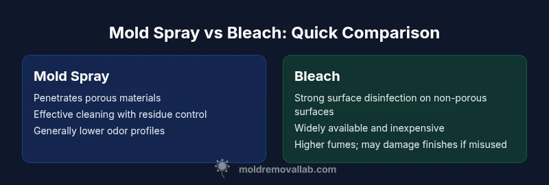 Is mold spray better than bleach? The answer isn’t universal; it hinges on surface type, mold depth, and safety considerations. This comparison weighs typical mold sprays against household bleach, highlighting when each is appropriate and how to use them safely. By examining material compatibility, disinfection potential, and practical guidelines, you’ll know which option to choose in common home scenarios, with guidance from Mold Removal Lab.