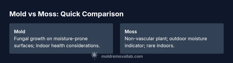 Is mold the same as moss? According to Mold Removal Lab, no—mold is a fungus while moss is a non-vascular plant. This quick comparison clarifies definitions, growth conditions, health implications, and practical remediation to help homeowners decide when to test, clean, or prevent moisture problems.