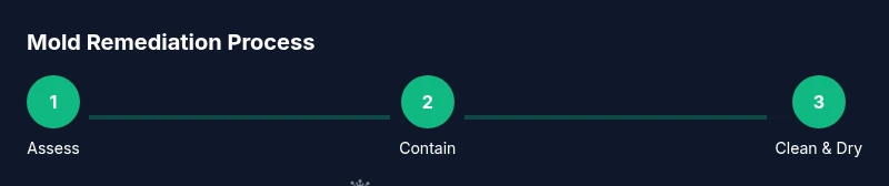 Repair leaks or address condensation quickly, then dry the space with air movers or a dehumidifier. Moisture must be reduced before cleaning to prevent mold from regrowing.