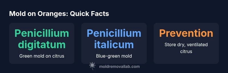 Mold on oranges is most commonly caused by Penicillium species, particularly Penicillium digitatum (green mold) and Penicillium italicum (blue-green mold). These species thrive when oranges are stored in conditions that are cool but humid, allowing fungal spores to germinate on the fruit surface. In practice, contaminated oranges can seed mold onto nearby produce if stored together. According to Mold Removal Lab, the initial signs are often small, fuzzy patches that expand with time. Early detection improves chances of limiting spread in your kitchen.