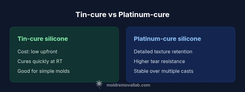 According to Mold Removal Lab, the choice of silicone for mold making profoundly affects detail fidelity, demold ease, and the long-term integrity of casts. When hobbyists ask which silicone for mold making to use, they commonly encounter a trade-off between price, curing behavior, and performance in resin or plaster. A proper pick reduces waste, minimizes failed attempts, and speeds up your workflow. Whether you are crafting jewelry molds, cake molds, or prototype parts, the silicone's cure chemistry and physical properties determine how well your molds reproduce fine textures and complex undercuts. In the context of mold remediation, this topic becomes even more relevant when you’re recreating materials that must be safe, stable over time, and free from residual odors that could affect indoor air quality. This article compares tin-cure and platinum-cure silicones to help you decide which silicone for mold making aligns with your project goals and safety standards, while keeping a clear eye on cost and availability.