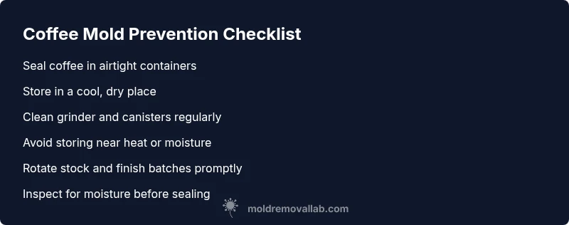 According to Mold Removal Lab, mold in coffee typically results from moisture and improper storage rather than brewing alone. The Mold Removal Lab team found that damp bags, crushed or ground coffee left exposed, or storing beans in warm, humid conditions promote mold growth. Quick fixes: discard questionable grounds, transfer beans to an airtight container, store in a cool, dry place, clean your grinder, and brew with freshly boiled water.